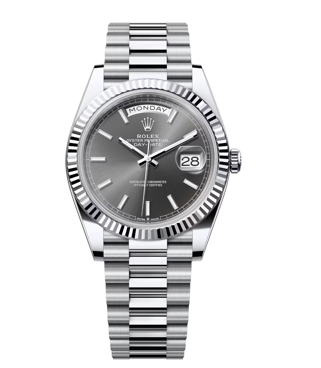 Rolex Day-Date 40 Oyster Perpetual platinum slate dial fluted bezel President band Reference 228236