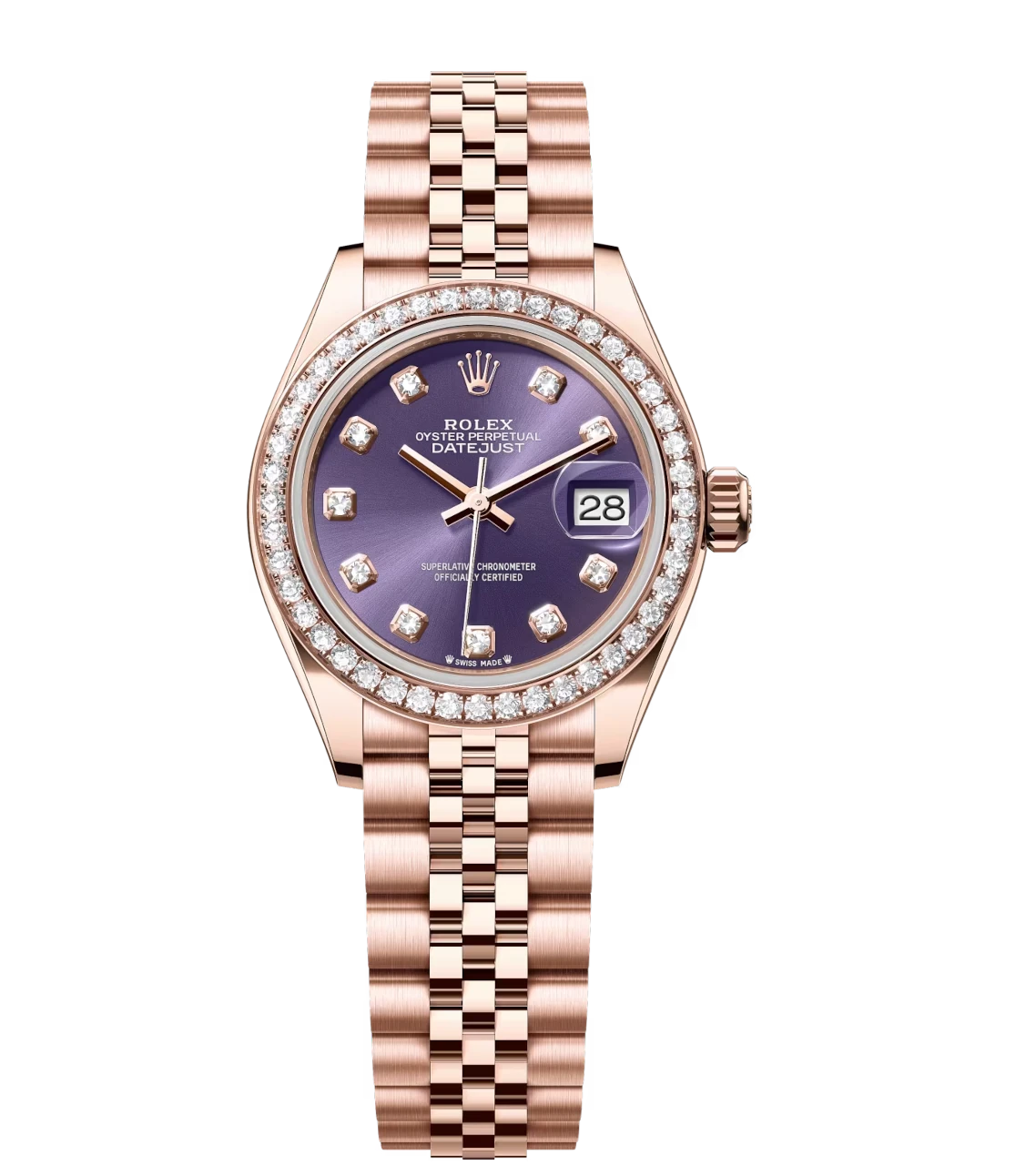 Rolex Lady-Datejust 28 Oyster Perpetual 18 ct Everose gold aubergine, diamond-set dial Jubilee band Reference 279135RBR