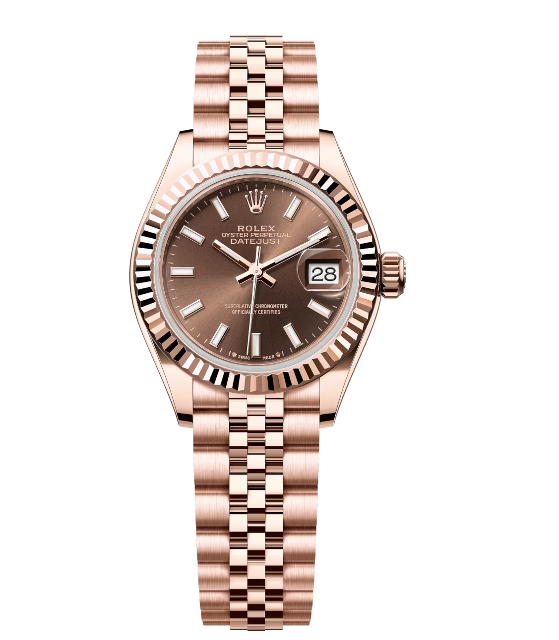 Rolex Lady-Datejust 28 Oyster Perpetual 18 ct Everose gold chocolate dial Jubilee band Reference 279175