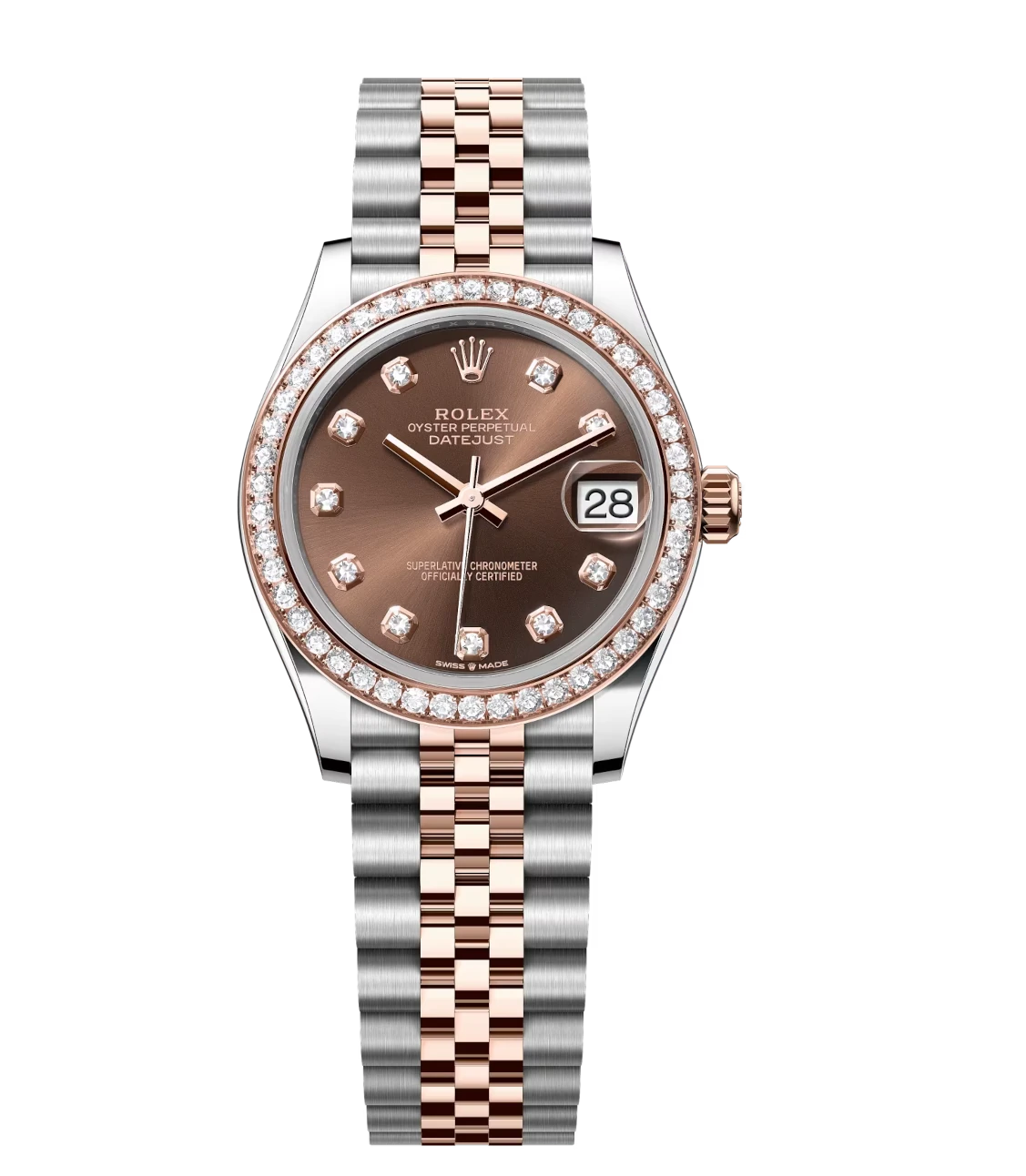 Rolex Lady-Datejust 28 Oyster Perpetual 18 ct Everose gold chocolate, diamond-set dial Jubilee band Reference 279135RBR
