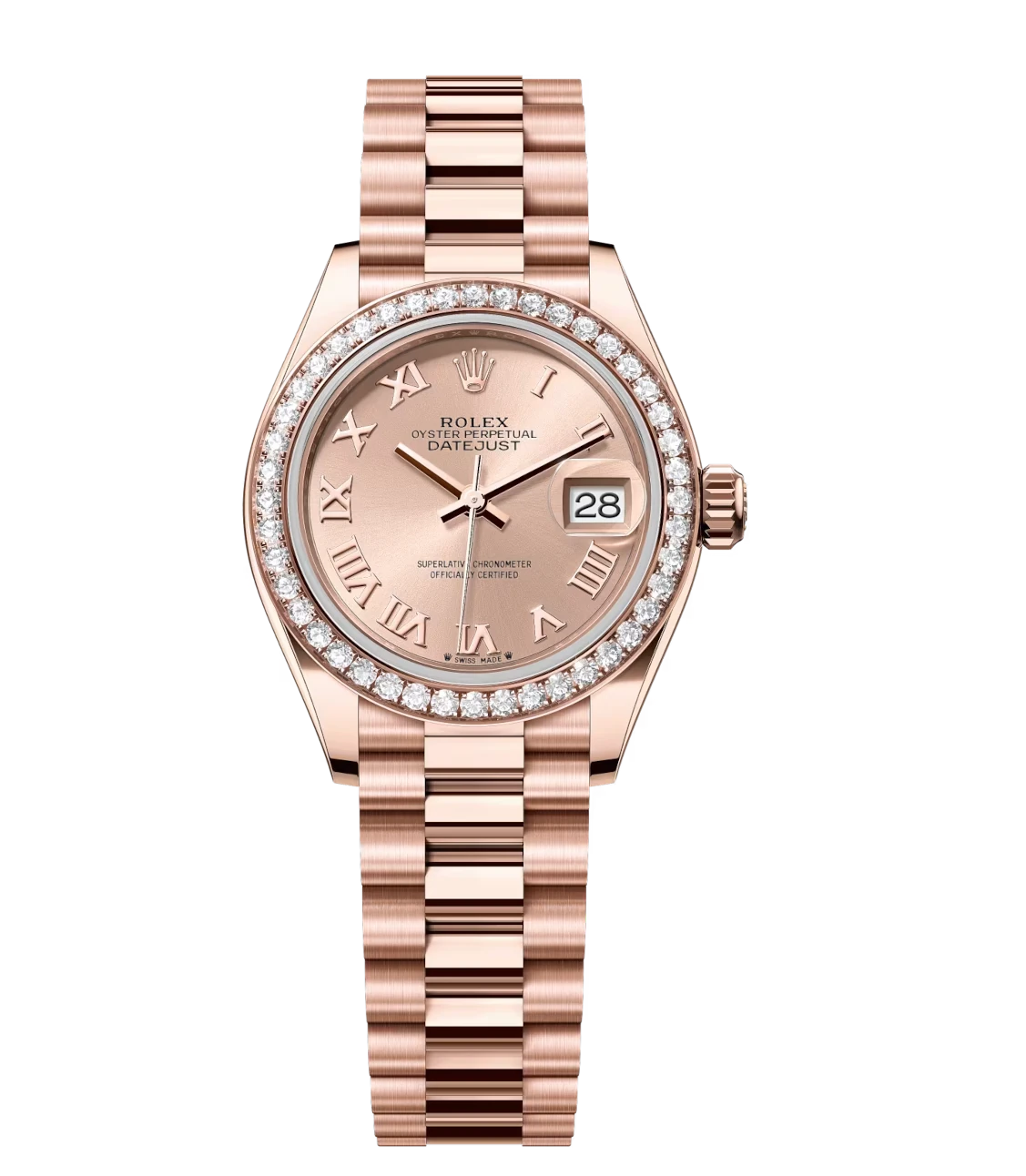 Rolex Lady-Datejust 28 Oyster Perpetual 18 ct Everose gold rosé-colour dial President band Reference 279135RBR