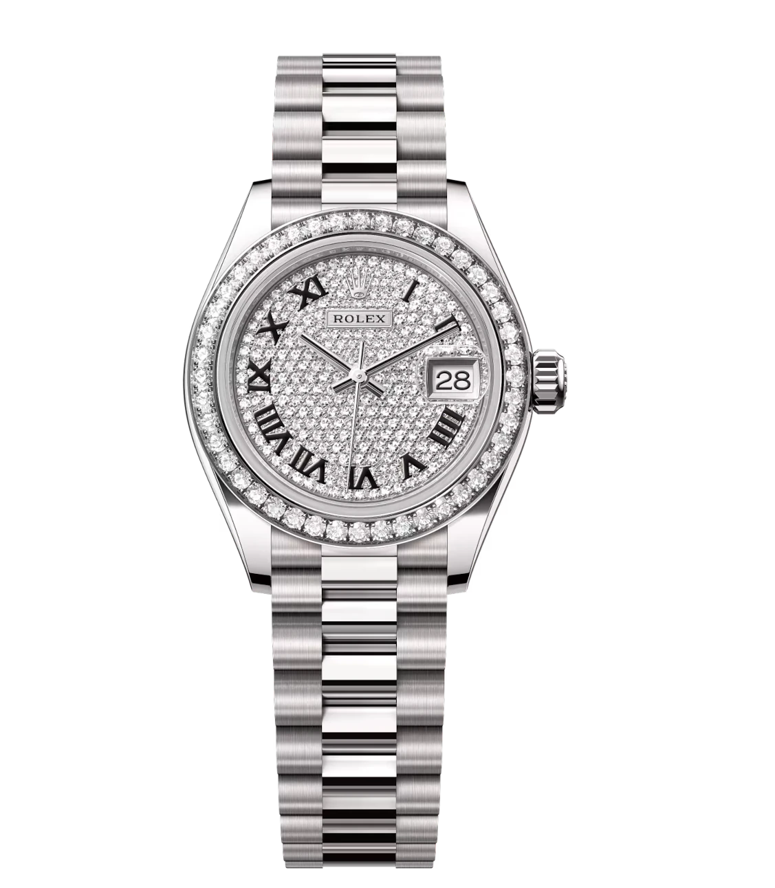 Rolex Lady-Datejust 28 Oyster Perpetual 18 ct white gold diamond-paved dial President band Reference 279139RBR
