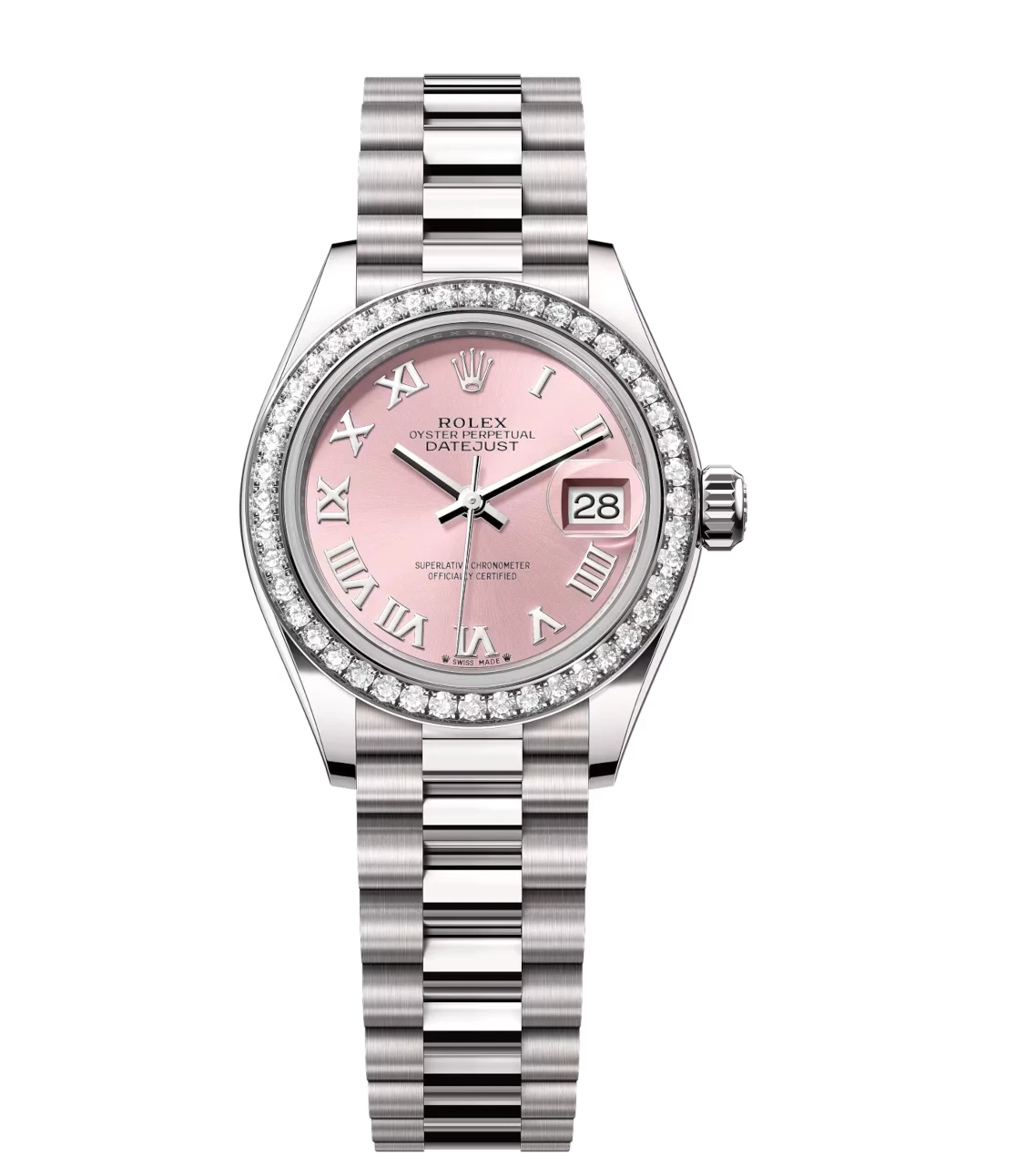 Rolex Lady-Datejust 28 Oyster Perpetual 18 ct white gold pink dial President band Reference 279139RBR
