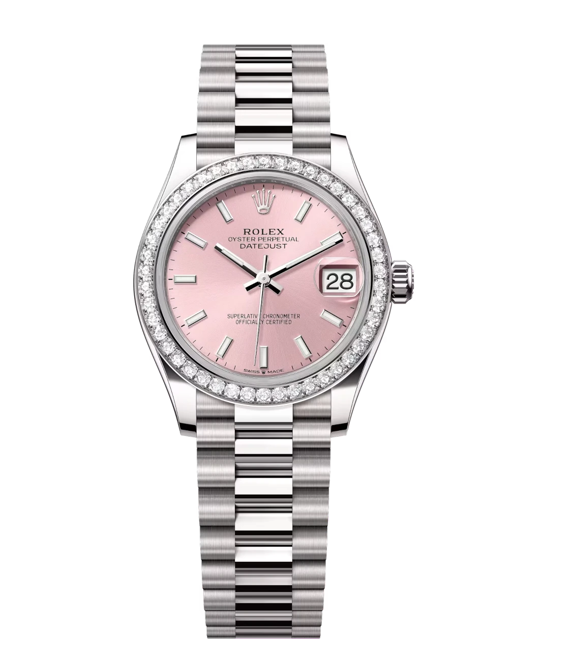 Rolex Lady-Datejust 28 Oyster Perpetual 18 ct white gold pink dial President band Reference 279139RBR
