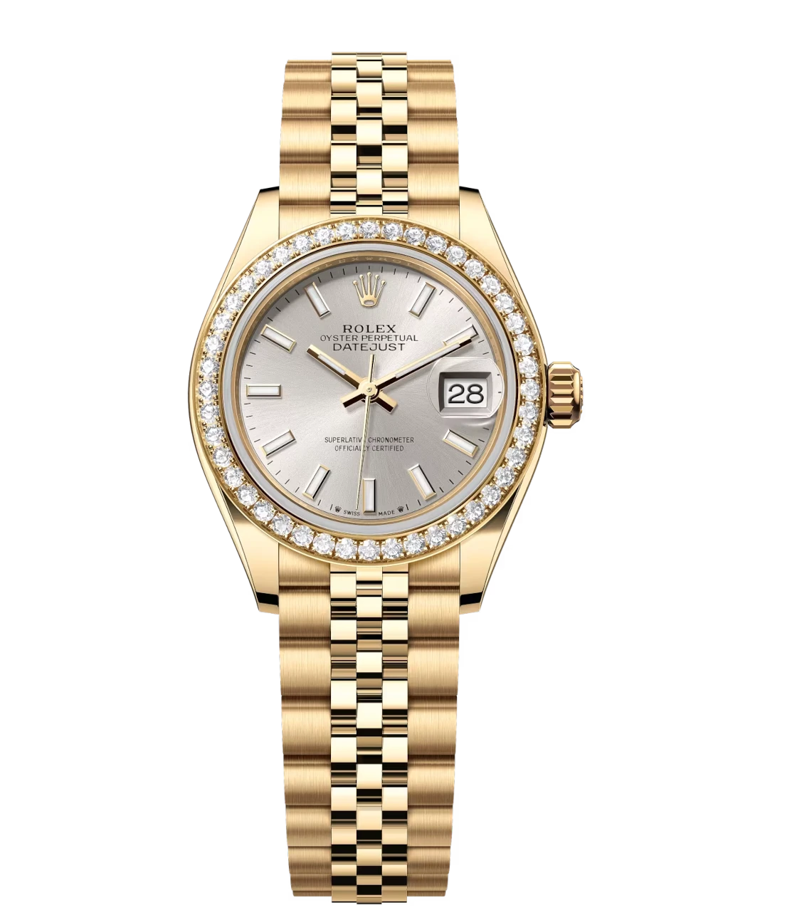 Rolex Lady-Datejust 28 Oyster Perpetual 18 ct yellow gold silver dial Jubilee band Reference 279138RBR
