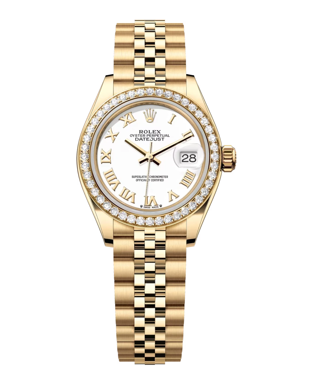 Rolex Lady-Datejust 28 Oyster Perpetual 18 ct yellow gold white dial Jubilee band Reference 279138RBR