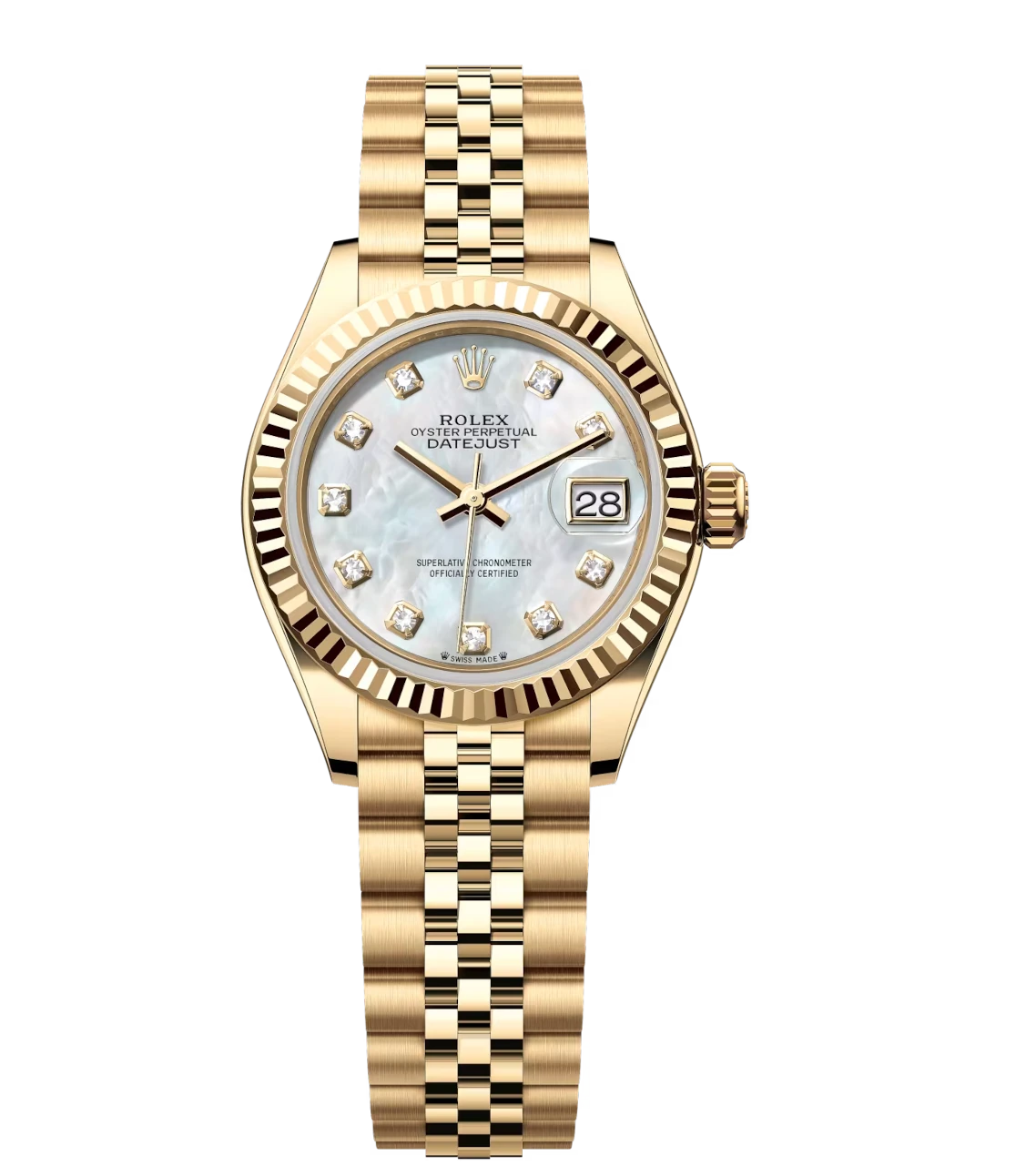 Rolex Lady-Datejust 28 Oyster Perpetual 18 ct yellow gold white mother-of-pearl, diamond-set dial Jubilee band Reference 279178