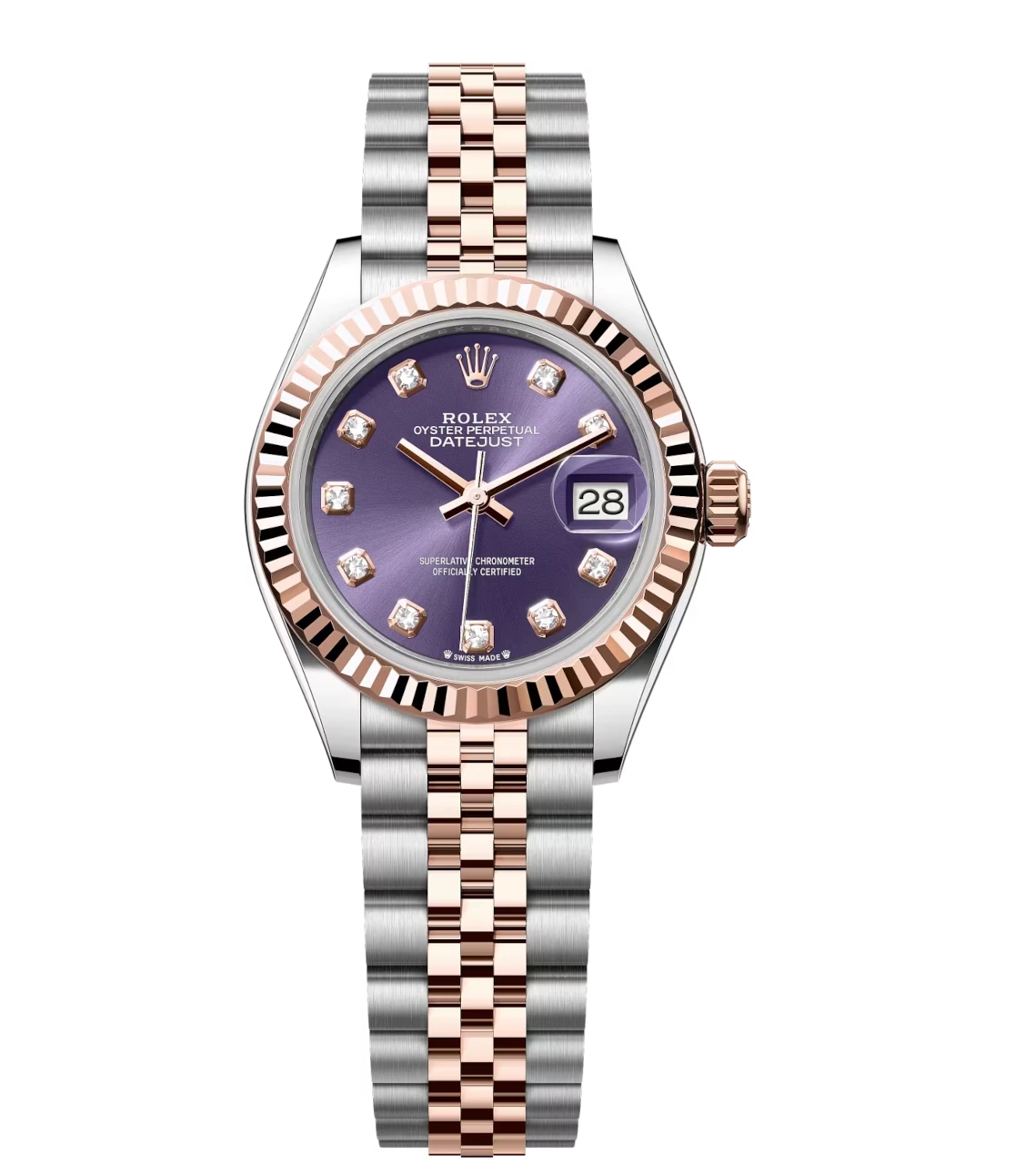 Rolex Lady-Datejust 28 Oyster Perpetual Oystersteel and Everose gold aubergine, diamond-set dial Jubilee band Reference 279171