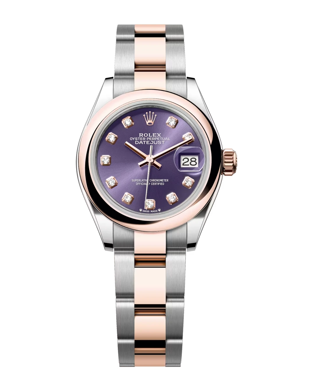 Rolex Lady-Datejust 28 Oyster Perpetual Oystersteel and Everose gold aubergine, diamond-set dial Oyster band Reference 279161