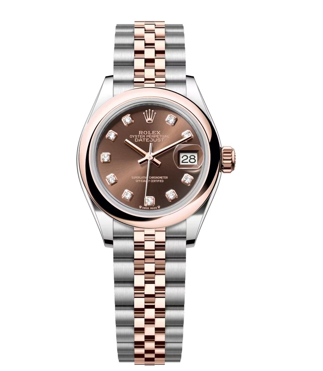 Rolex Lady-Datejust 28 Oyster Perpetual Oystersteel and Everose gold chocolate, diamond-set dial Jubilee band Reference 279161