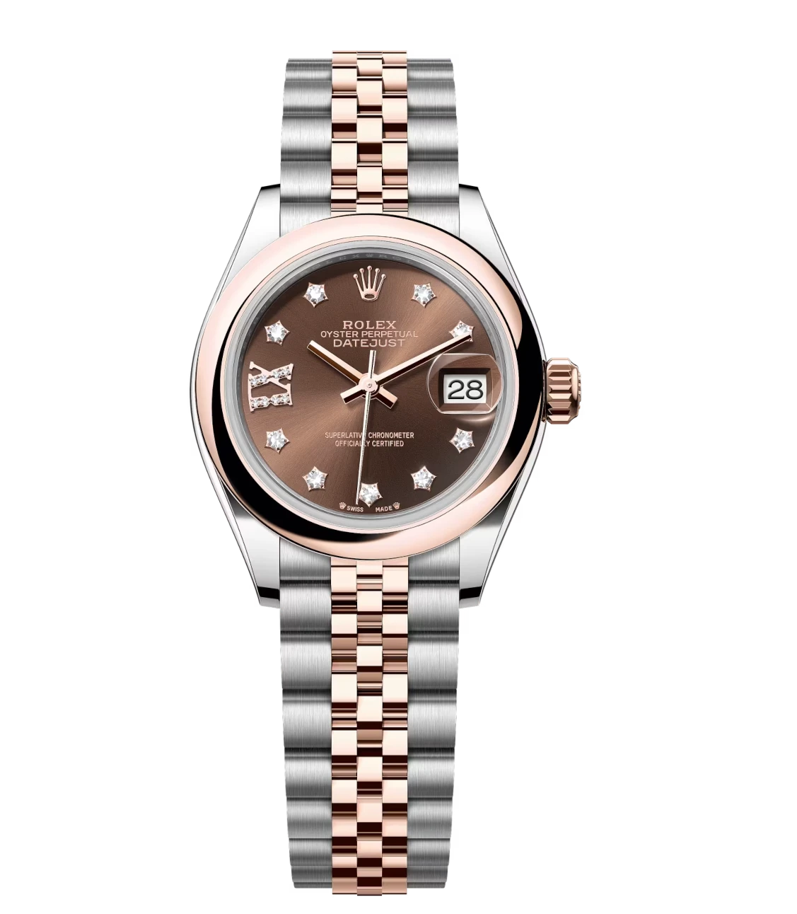 Rolex Lady-Datejust 28 Oyster Perpetual Oystersteel and Everose gold chocolate, diamond-set dial Jubilee band Reference 279161