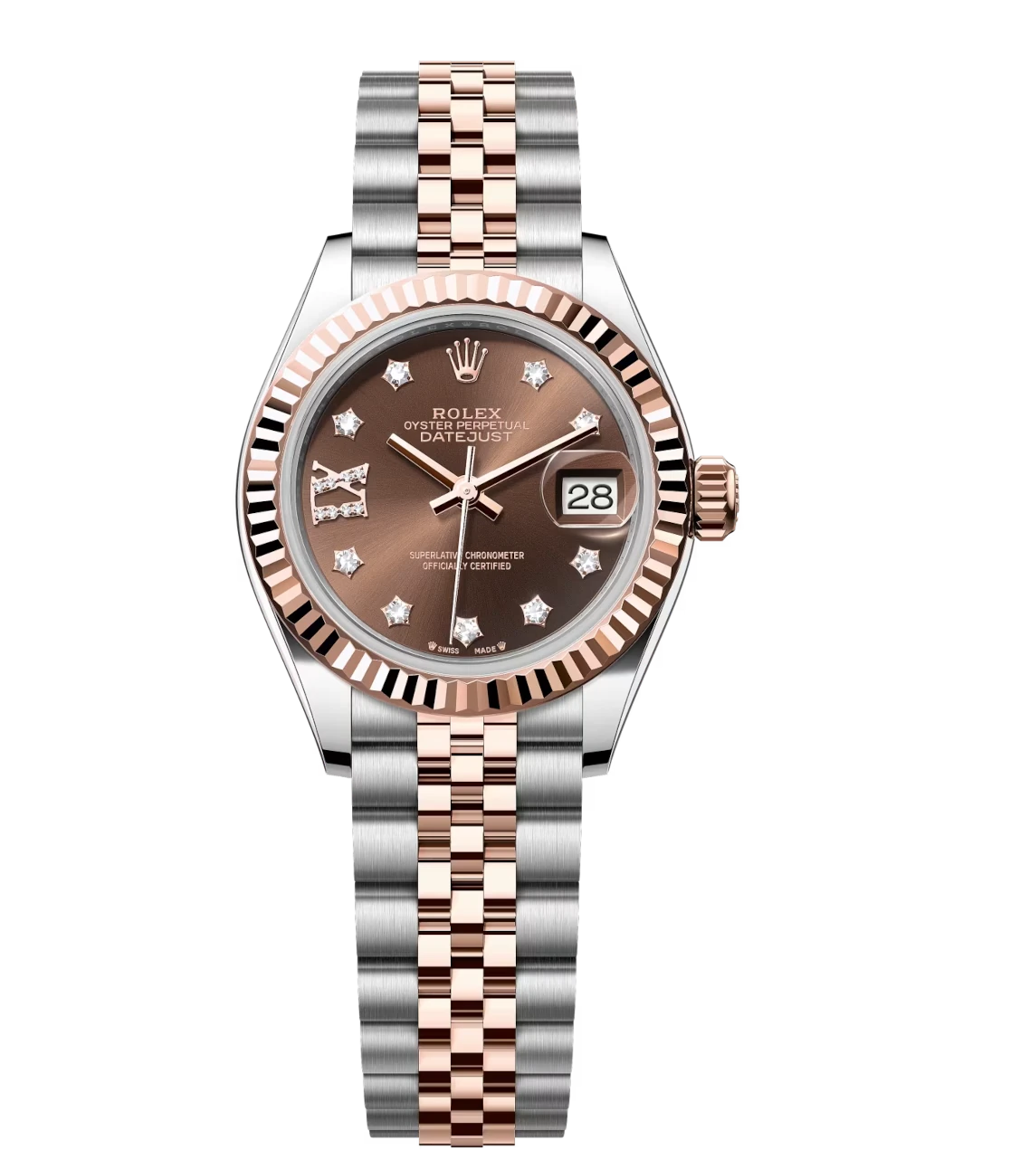 Rolex Lady-Datejust 28 Oyster Perpetual Oystersteel and Everose gold chocolate, diamond-set dial Jubilee band Reference 279171