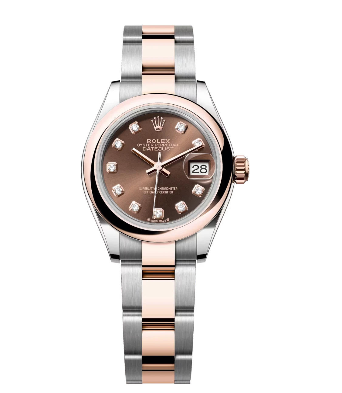 Rolex Lady-Datejust 28 Oyster Perpetual Oystersteel and Everose gold chocolate, diamond-set dial Oyster band Reference 279161