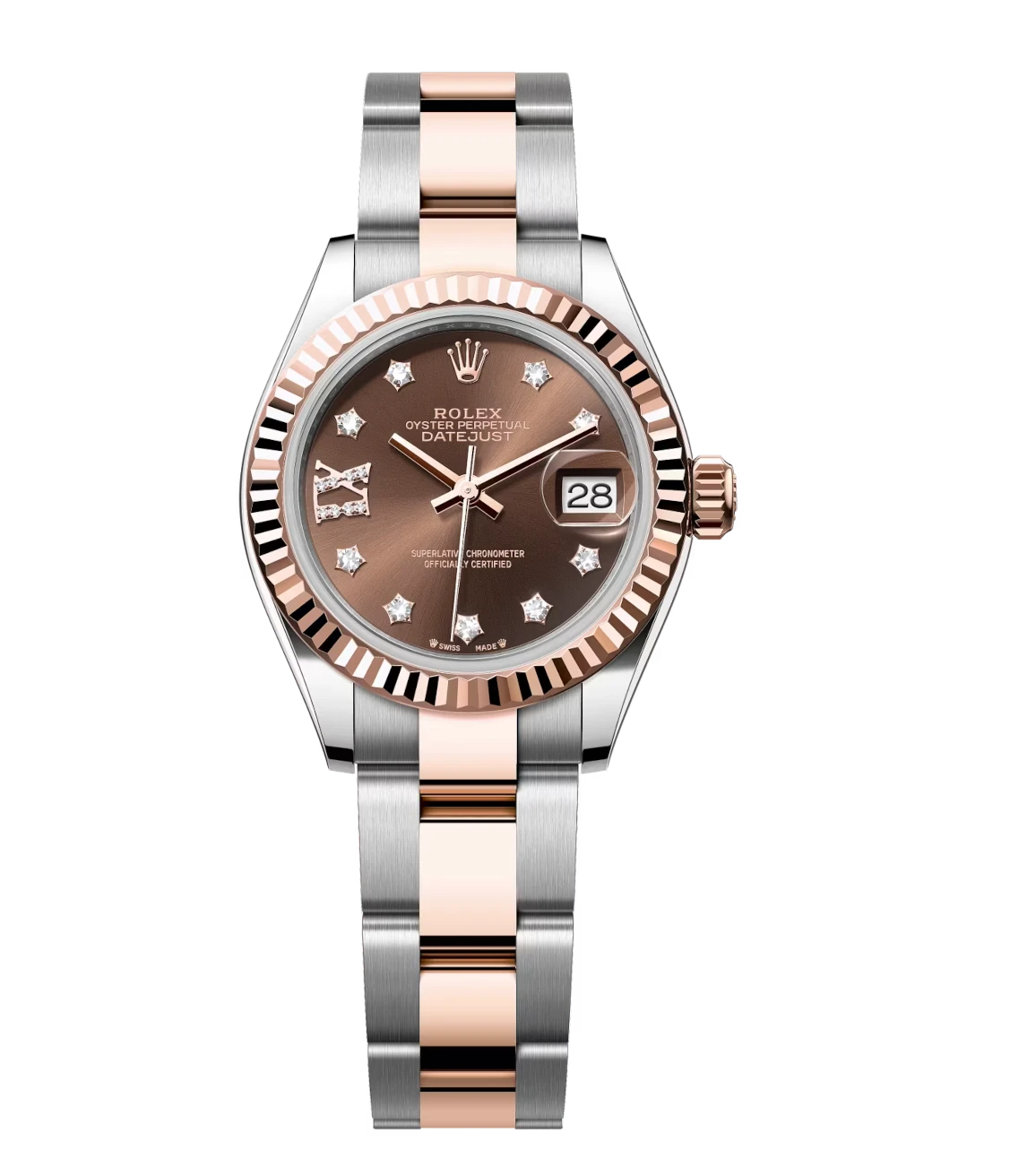 Rolex Lady-Datejust 28 Oyster Perpetual Oystersteel and Everose gold chocolate, diamond-set dial Oyster band Reference 279171