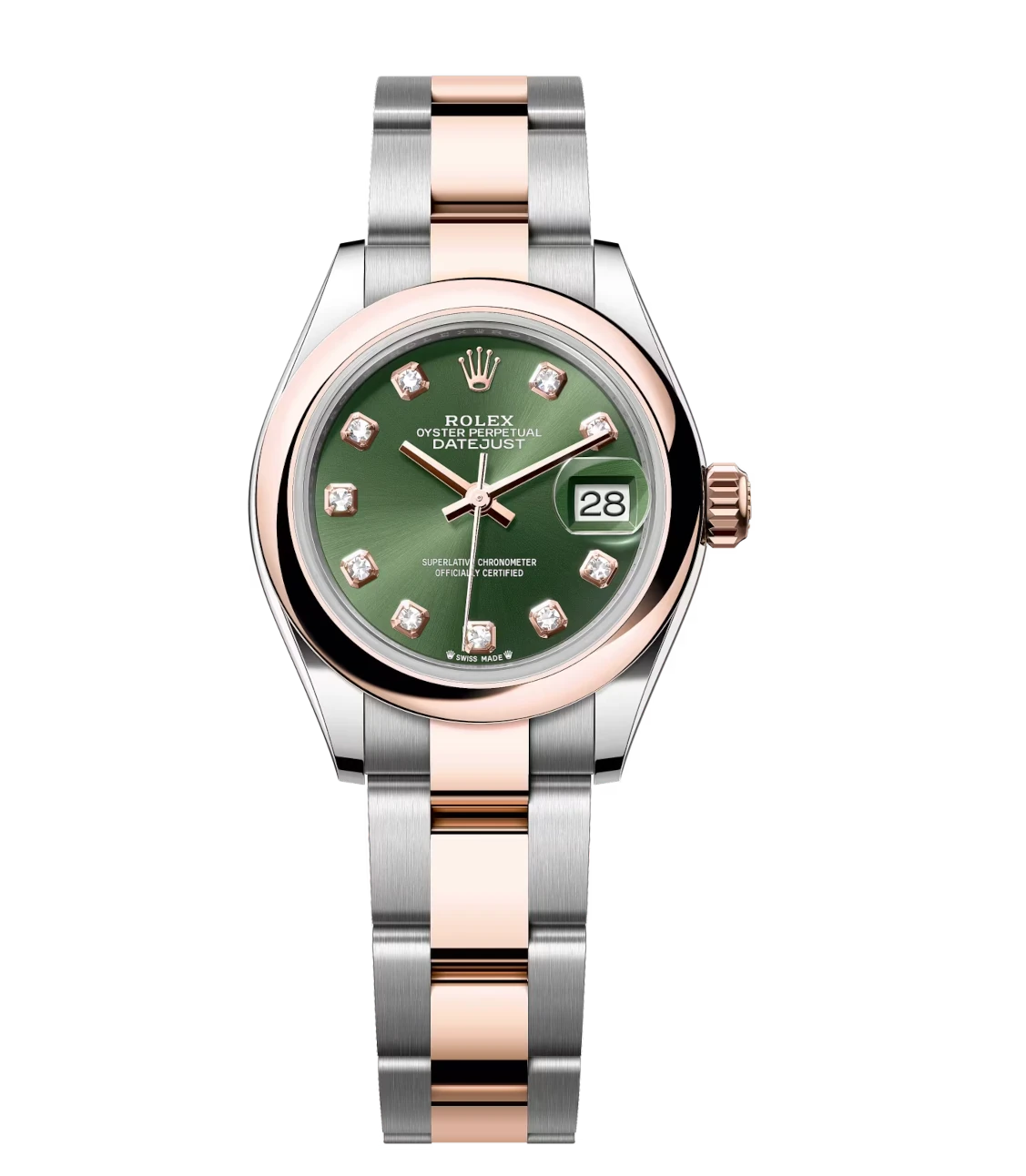 Rolex Lady-Datejust 28 Oyster Perpetual Oystersteel and Everose gold olive-green, diamond-set dial Oyster band Reference 279161