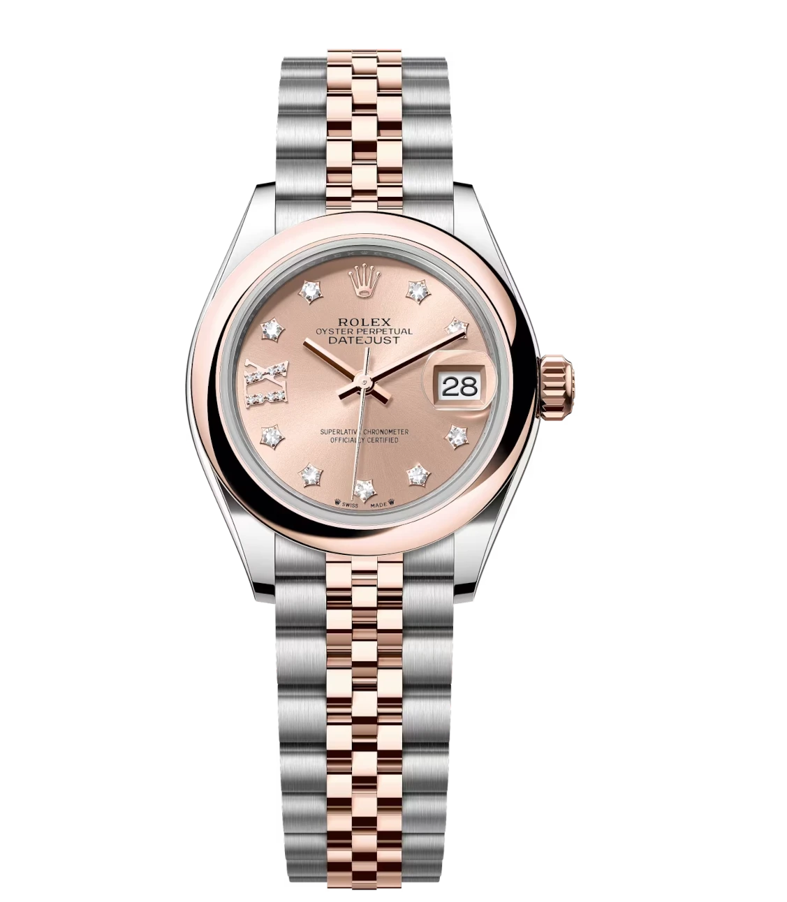 Rolex Lady-Datejust 28 Oyster Perpetual Oystersteel and Everose gold rosé colour, diamond-set dial Jubilee band Reference 279161