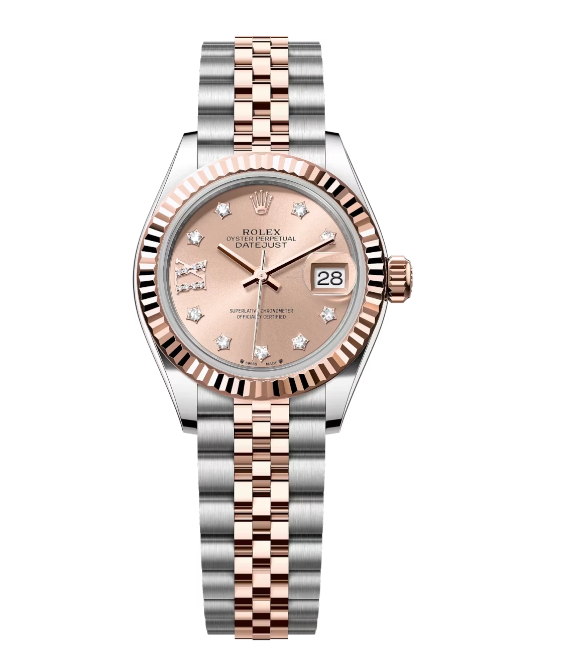 Rolex Lady-Datejust 28 Oyster Perpetual Oystersteel and Everose gold rosé colour, diamond-set dial Jubilee band Reference 279171