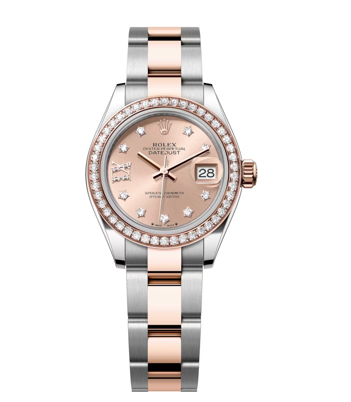 Rolex Lady-Datejust 28 Oyster Perpetual Oystersteel and Everose gold rosé colour, diamond-set dial Oyster band Reference 279381RBR