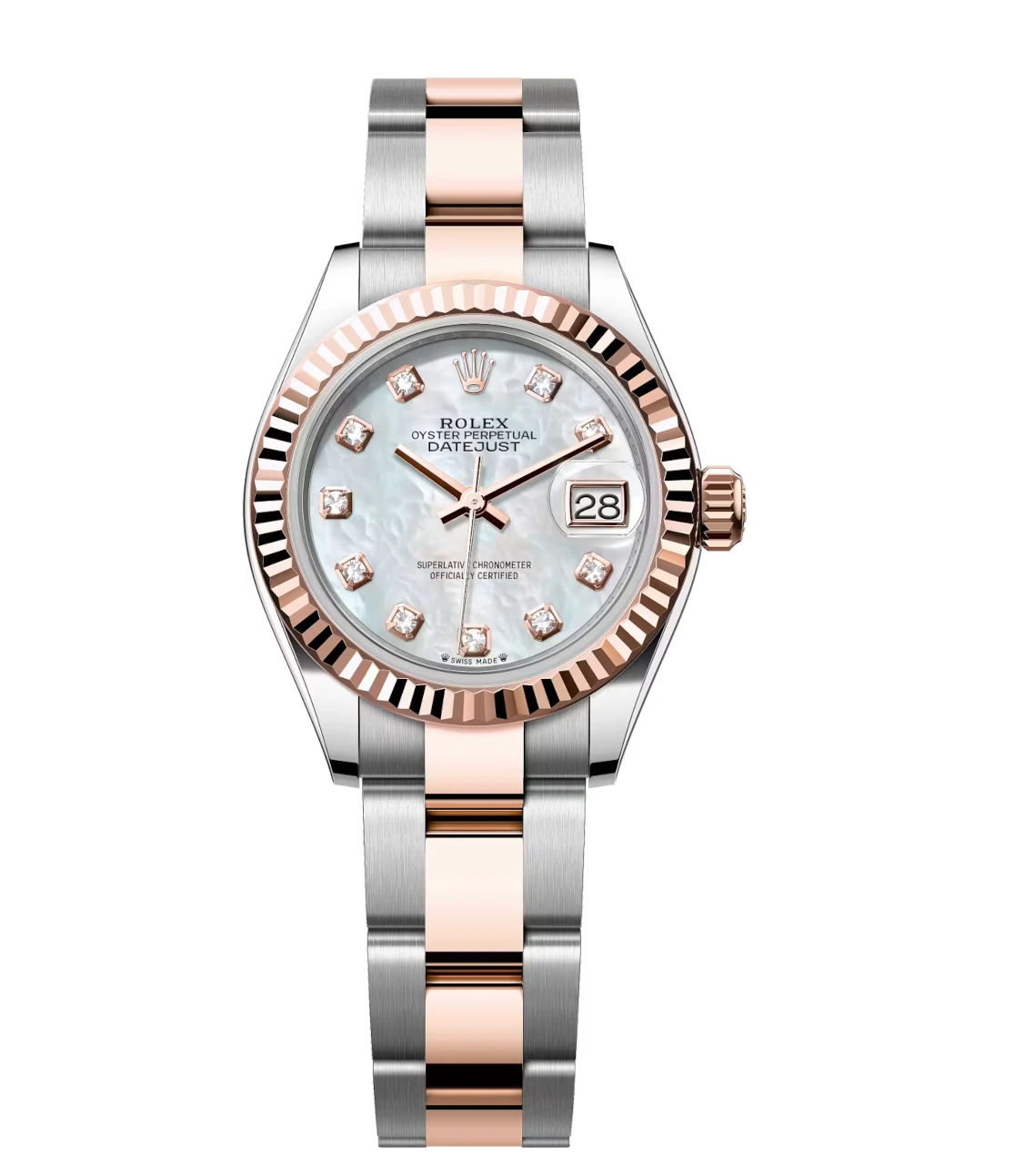 Rolex Lady-Datejust 28 Oyster Perpetual Oystersteel and Everose gold white mother-of-pearl, diamond-set dial Oyster band Reference 279171