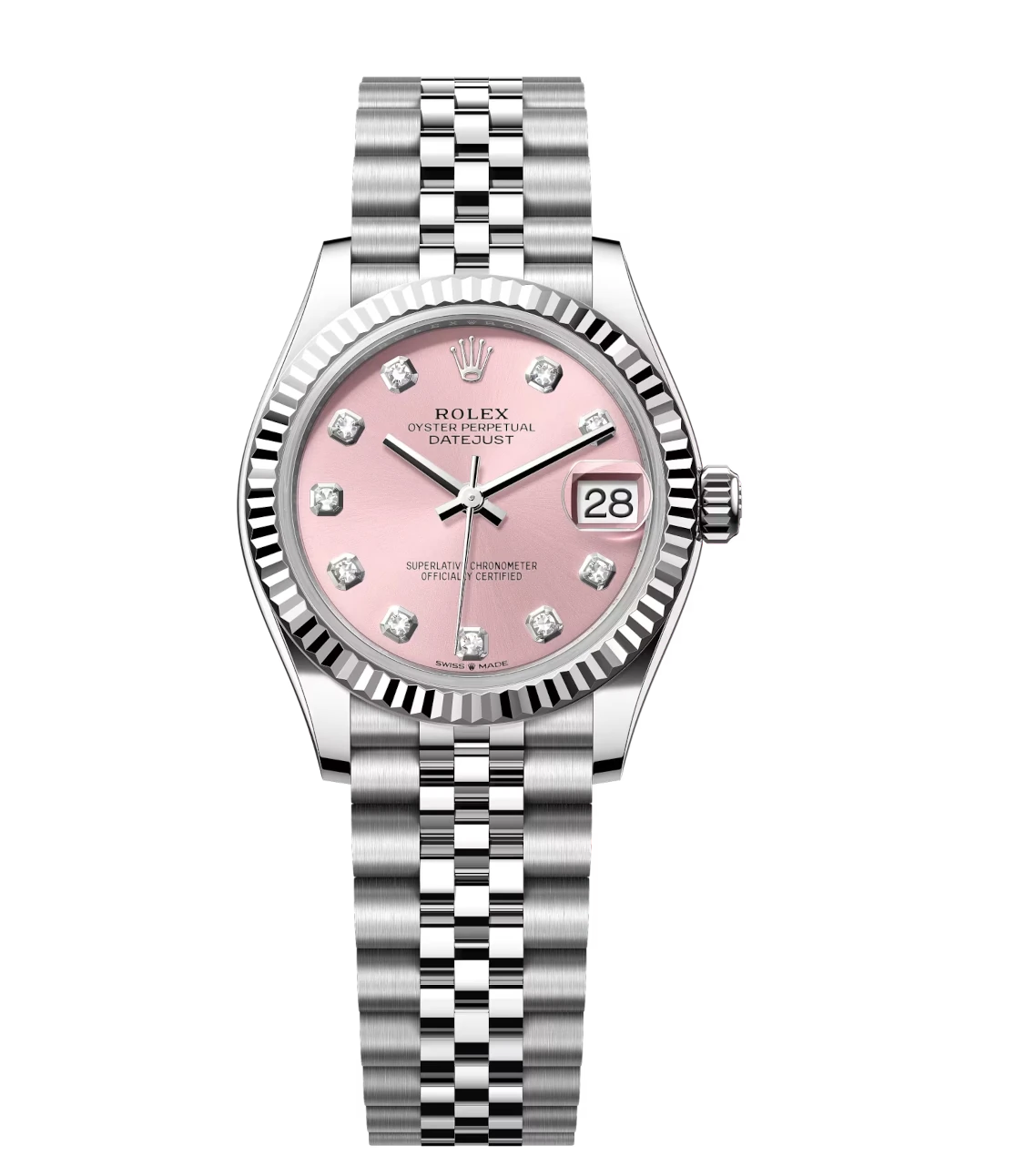 Rolex Lady-Datejust 28 Oyster Perpetual Oystersteel and white gold pink, diamond-set dial Jubilee band Reference 279174