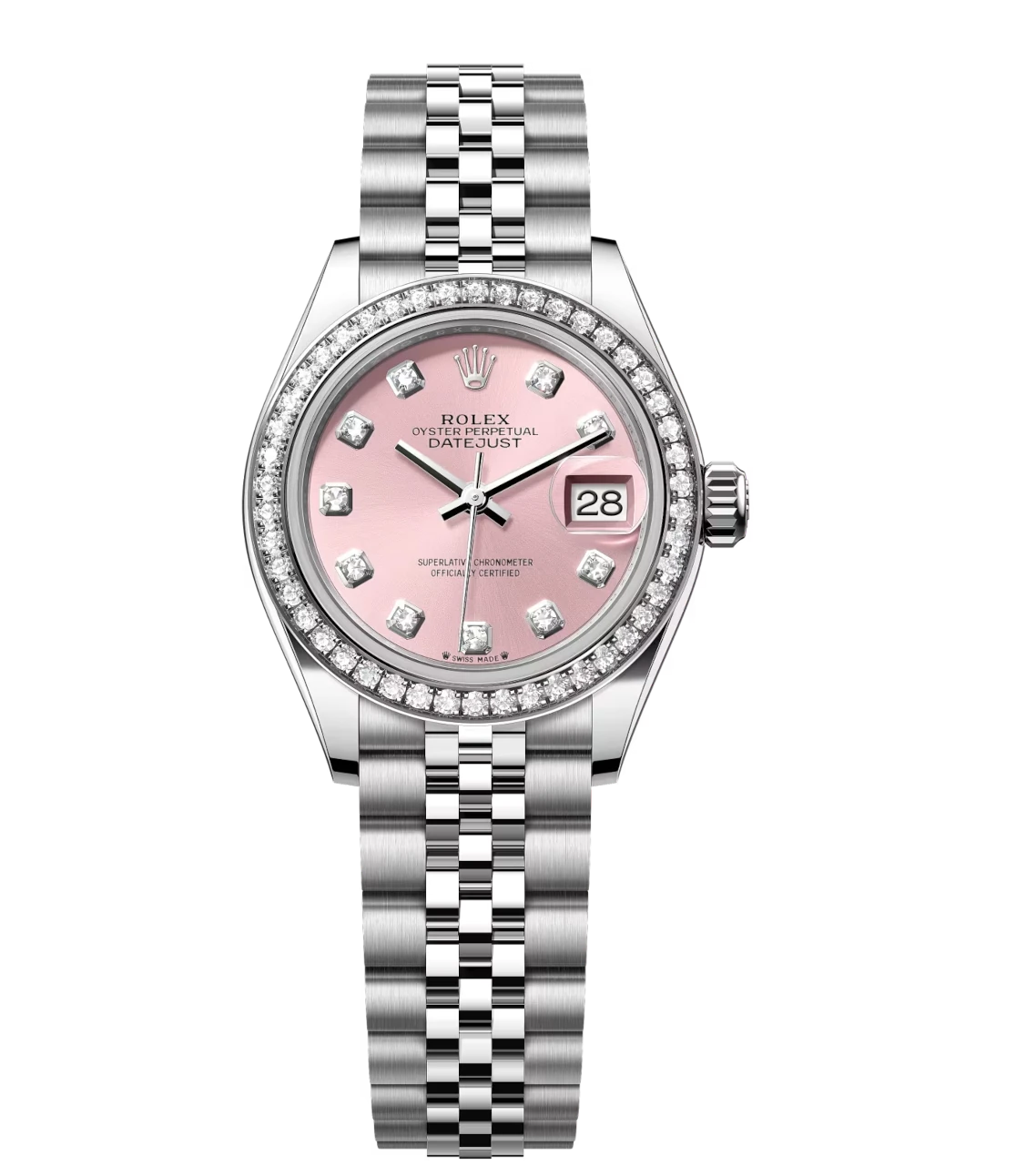 Rolex Lady-Datejust 28 Oyster Perpetual Oystersteel and white gold pink, diamond-set dial Jubilee band Reference 279384RBR