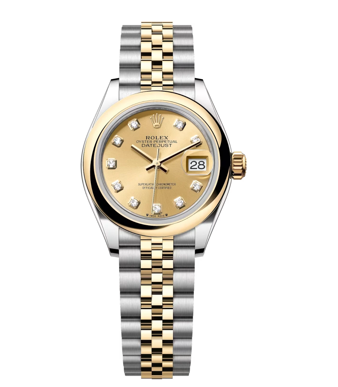Rolex Lady-Datejust 28 Oyster Perpetual Oystersteel and yellow gold champagne colour, diamond-set dial Jubilee band Reference 279163