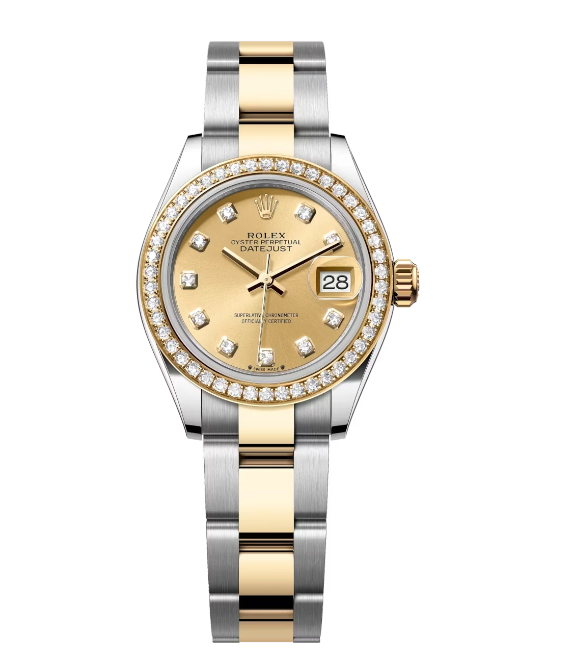 Rolex Lady-Datejust 28 Oyster Perpetual Oystersteel and yellow gold champagne colour, diamond-set dial Oyster band Reference 279383RBR