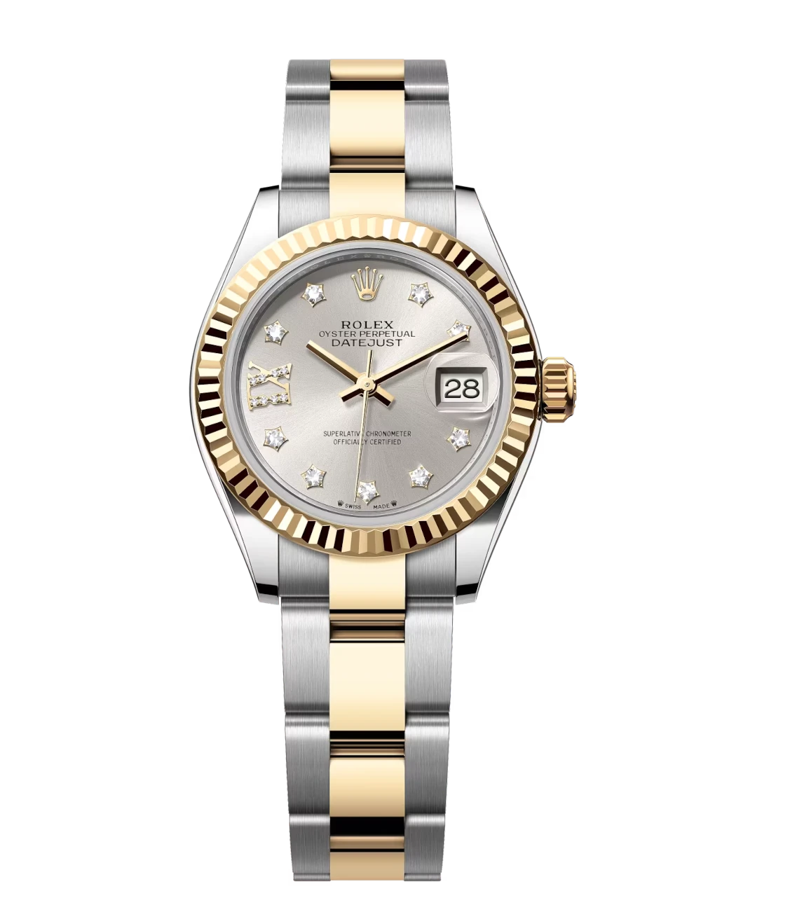 Rolex Lady-Datejust 28 Oyster Perpetual Oystersteel and yellow gold silver, diamond-set dial Oyster band Reference 279173