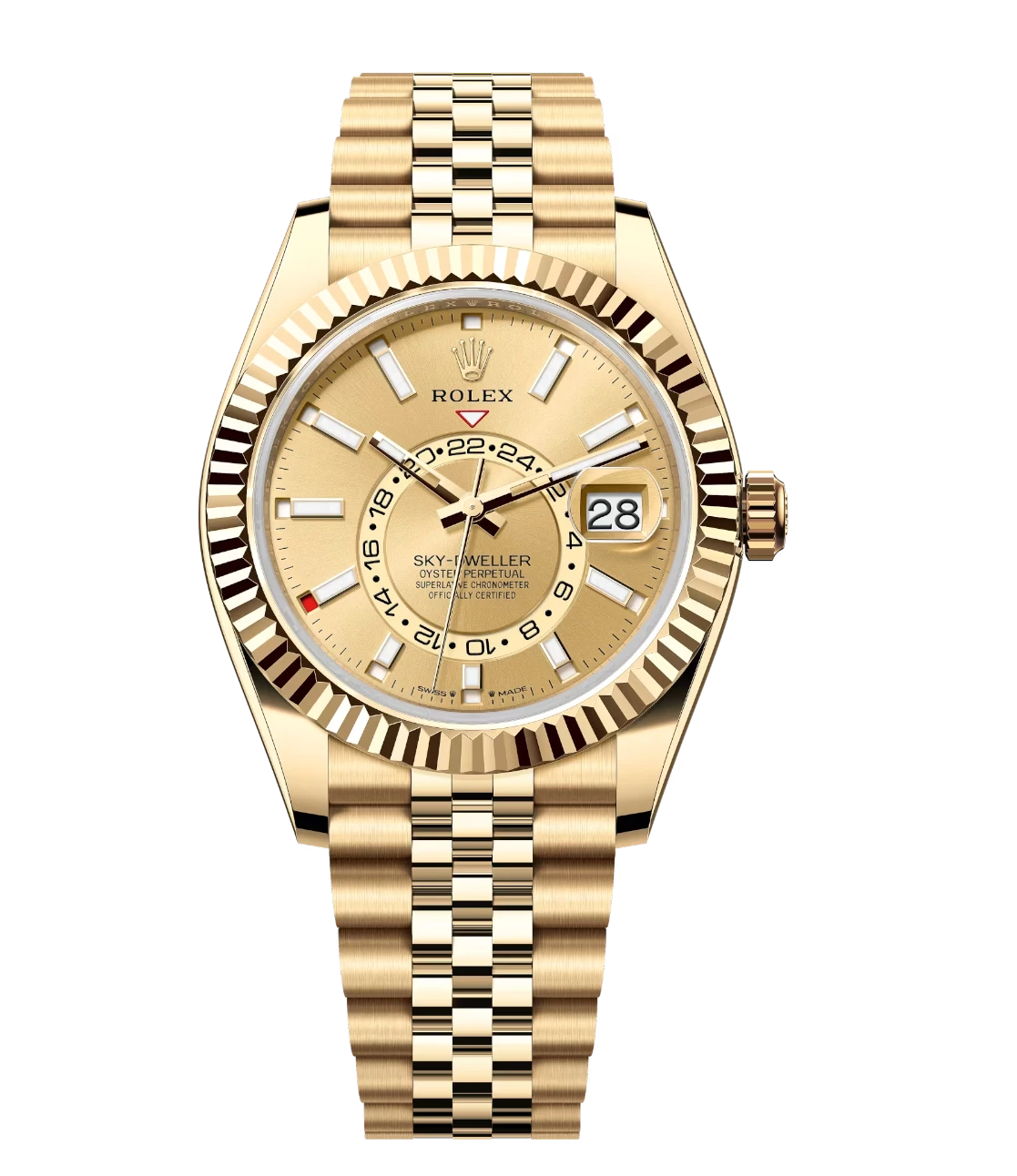 Rolex Sky-Dweller 42 Oyster Perpetual 18 ct yellow gold champagne-colour dial Jubilee band Reference 336938