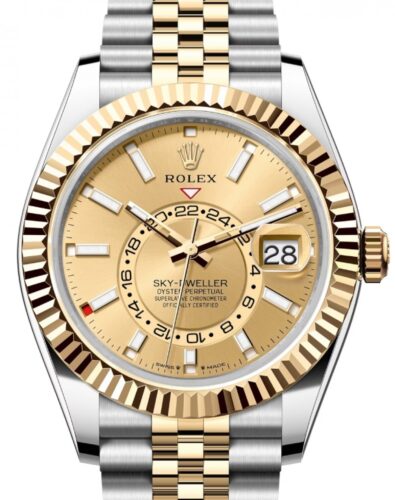 Rolex Sky-Dweller 40 Oyster Perpetual Oystersteel and yellow gold champagne-colour dial Jubilee band Reference 326933WSO